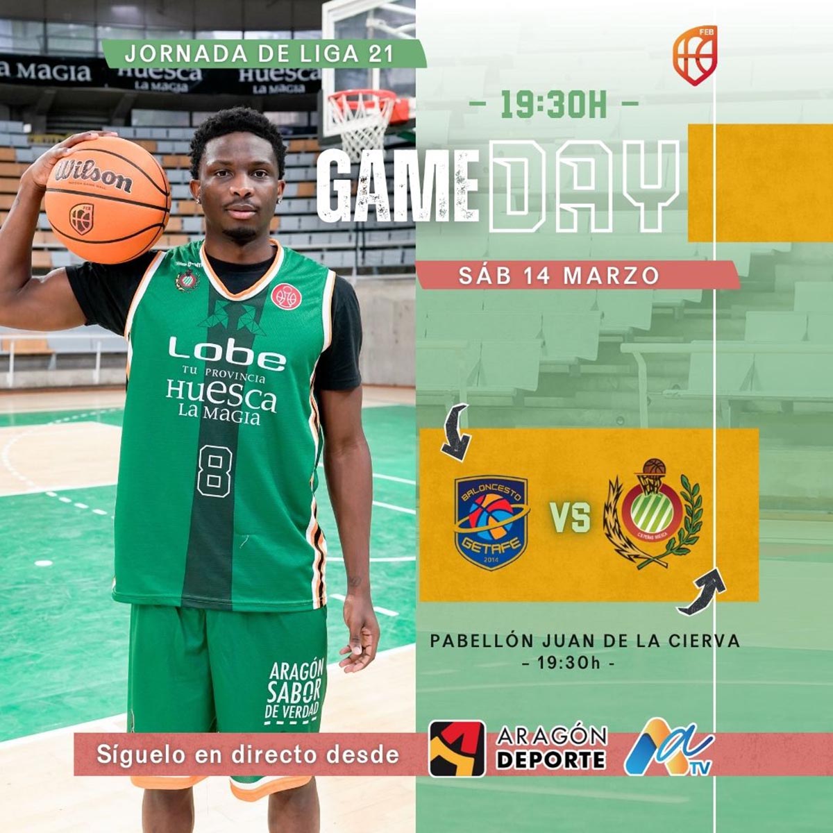 Afición💚🏀¡¡Marcha verde a Zaragoza!!💚🏀Este 29/03 acompaña a tu equipo en un duelo del Derbi Aragones. Marcha Verde CB Zaragoza 🆚 Lobe Huesca La Magia, 📅 Jornada 23 de Liga Regular 📅 Domingo 29 de Marzo 🕛 12:00 📍 C. de Luis Legaz Lacambra 🎟️ Entrada: 7€🎟️🥪 Entrada +...
